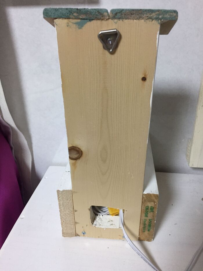 裏は手抜きでペンキは塗っていません。後ろの配線の穴は電動ドリルで穴を開けてその穴にジグソーでくり抜いてます。