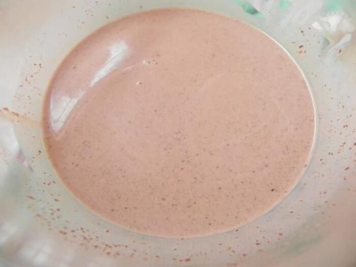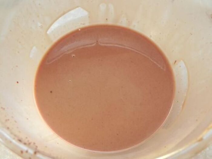 1を電子レンジ600wで20秒くらい温めて、2と生クリームを混ぜ合わせます。