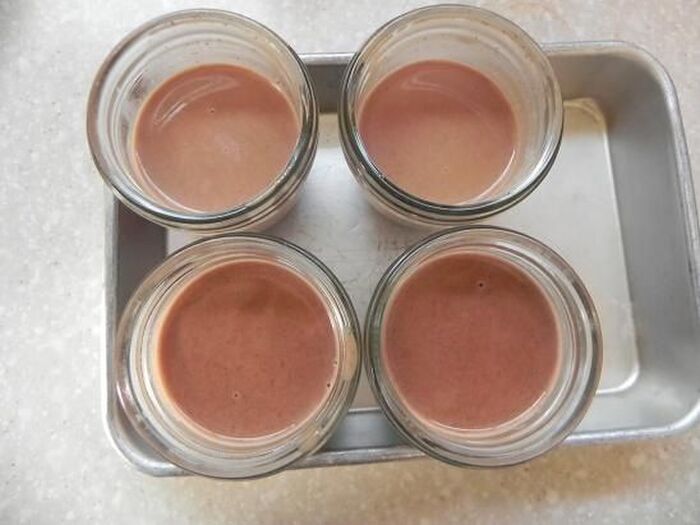 小さめのプリンカップに流し入れ、冷蔵庫で冷やし固めます。固まったらデコシュガーを飾って完成♪
