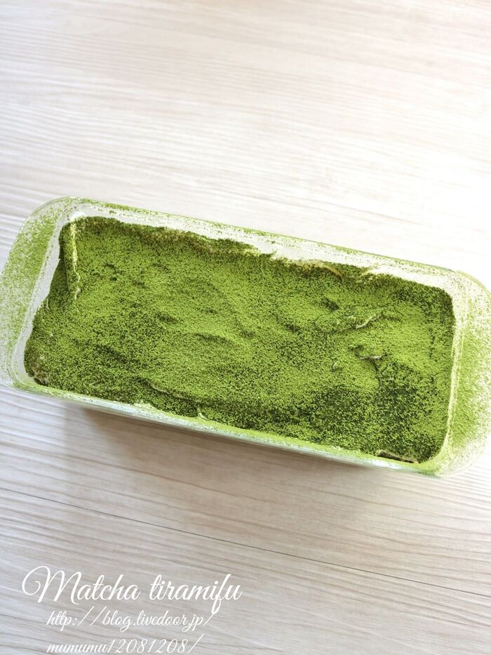 出来上がりに抹茶パウダーを振りかける。