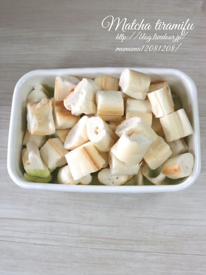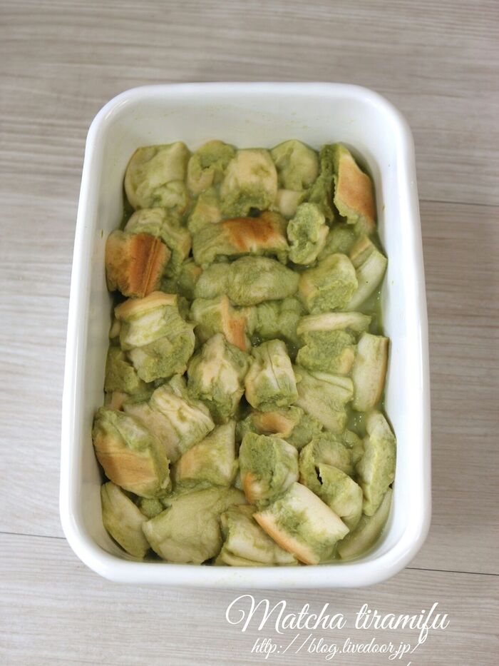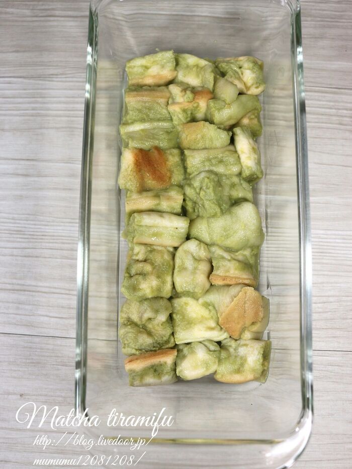 お麩を入れて抹茶を染み込ませる。
