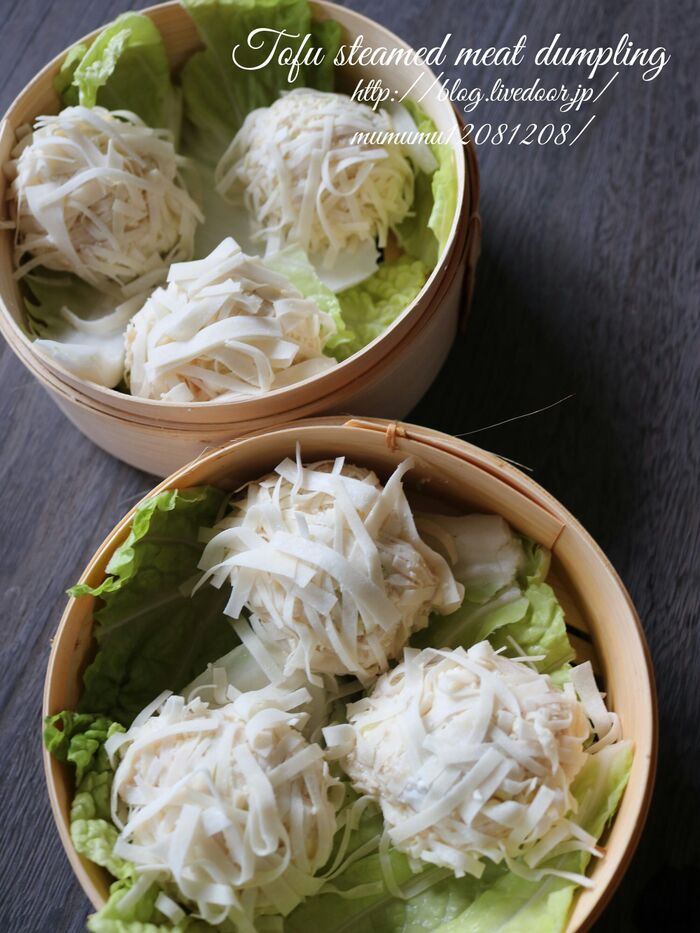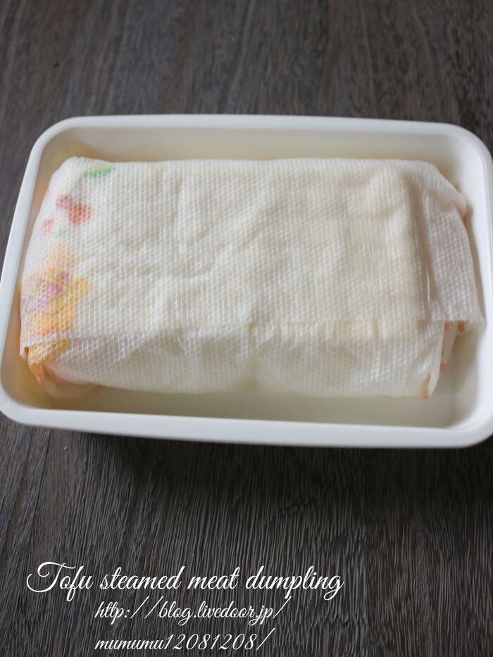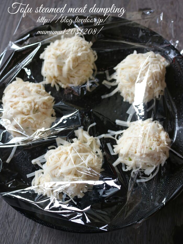 電子レンジでする場合は、器に白菜等お野菜を敷くか、油をうっすらと塗って豆腐シュウマイをおいて、ふんわりラップで600ワットの6分30秒くらいチンする。