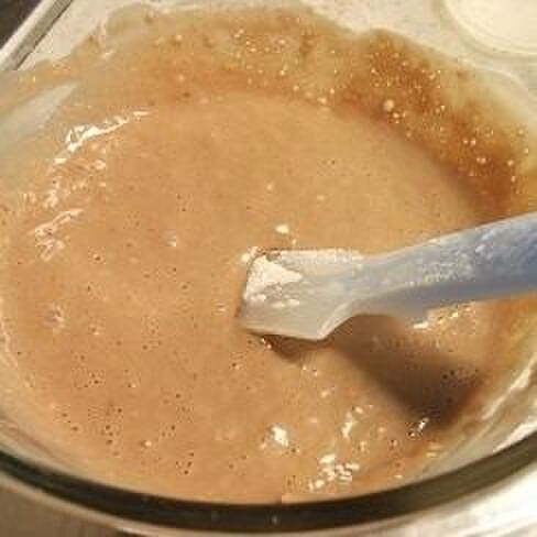 残りの牛乳50ccとオリーブ油を入れて混ぜる。