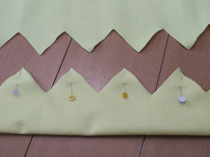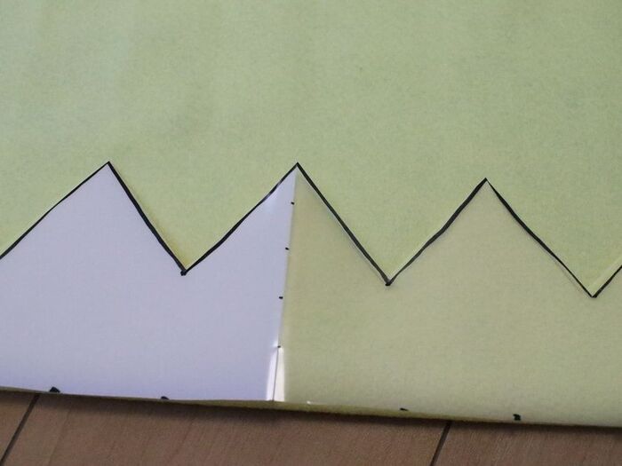 半分に折ったフェルトの上に型紙を合わせて印をつけます。