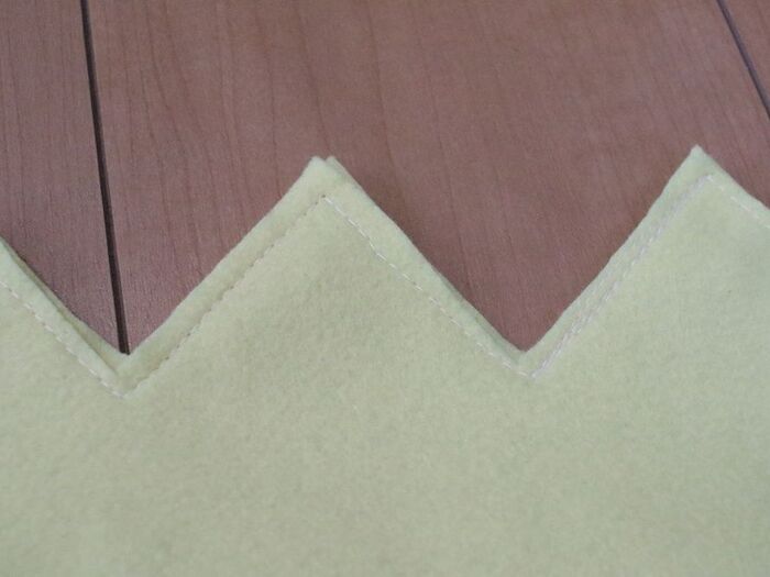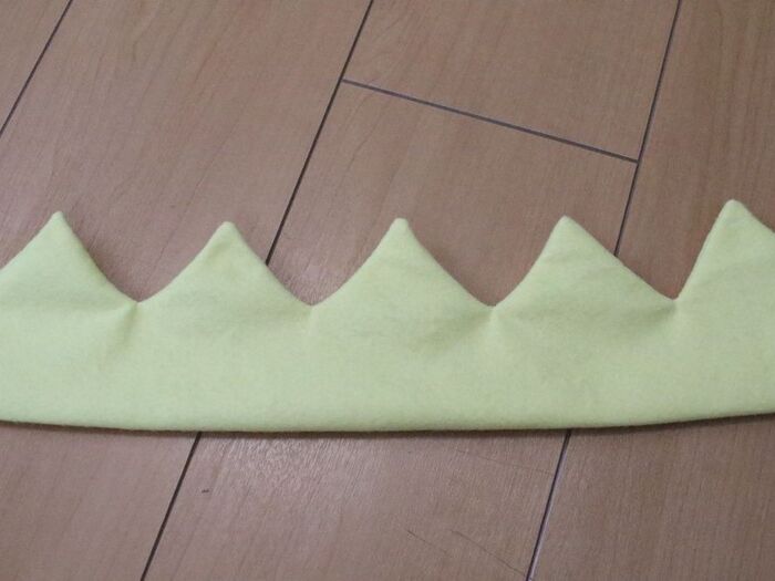 後ろは縫い止めずにマジックテープなどで大きさ調整出来るようにしています。