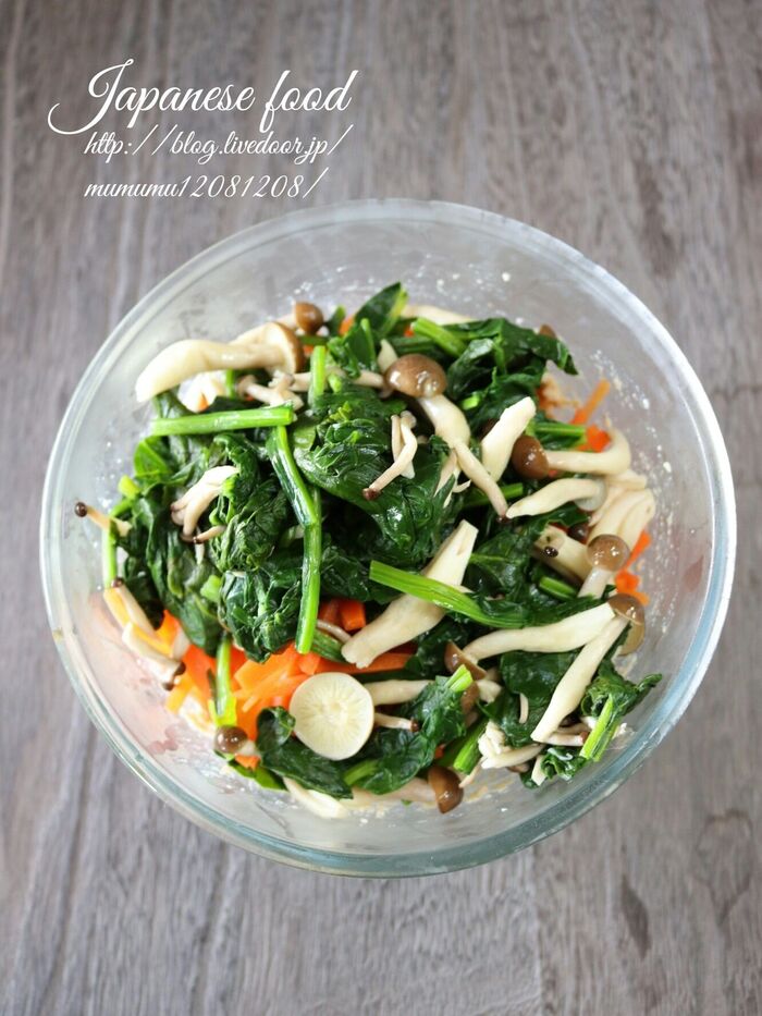 ほうれん草をサッと茹でる。