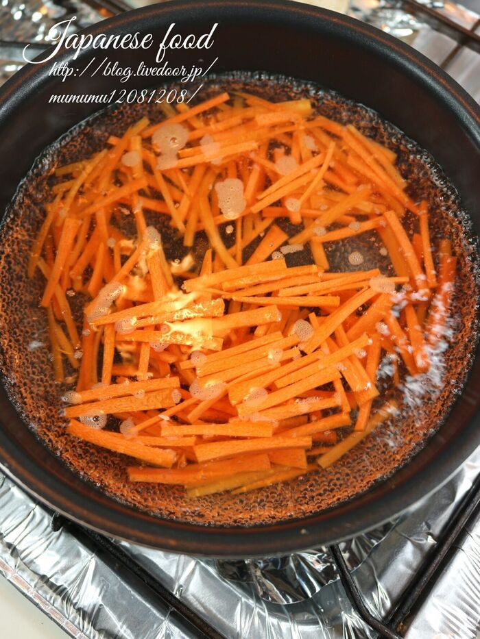 にんじんも茹でる。