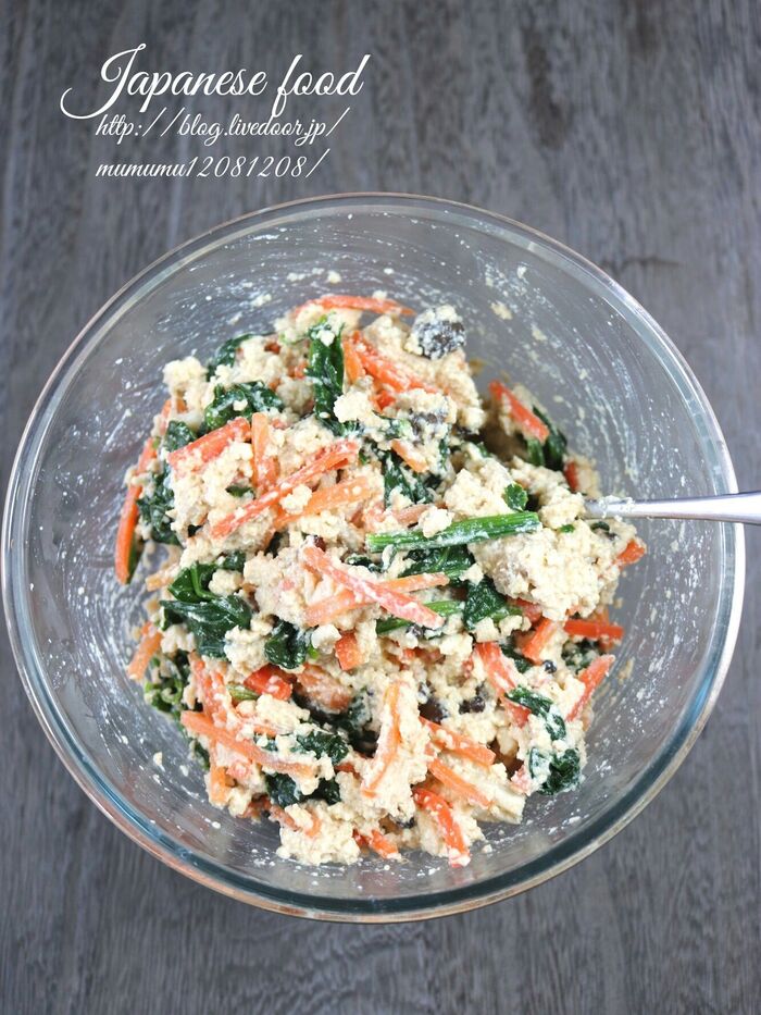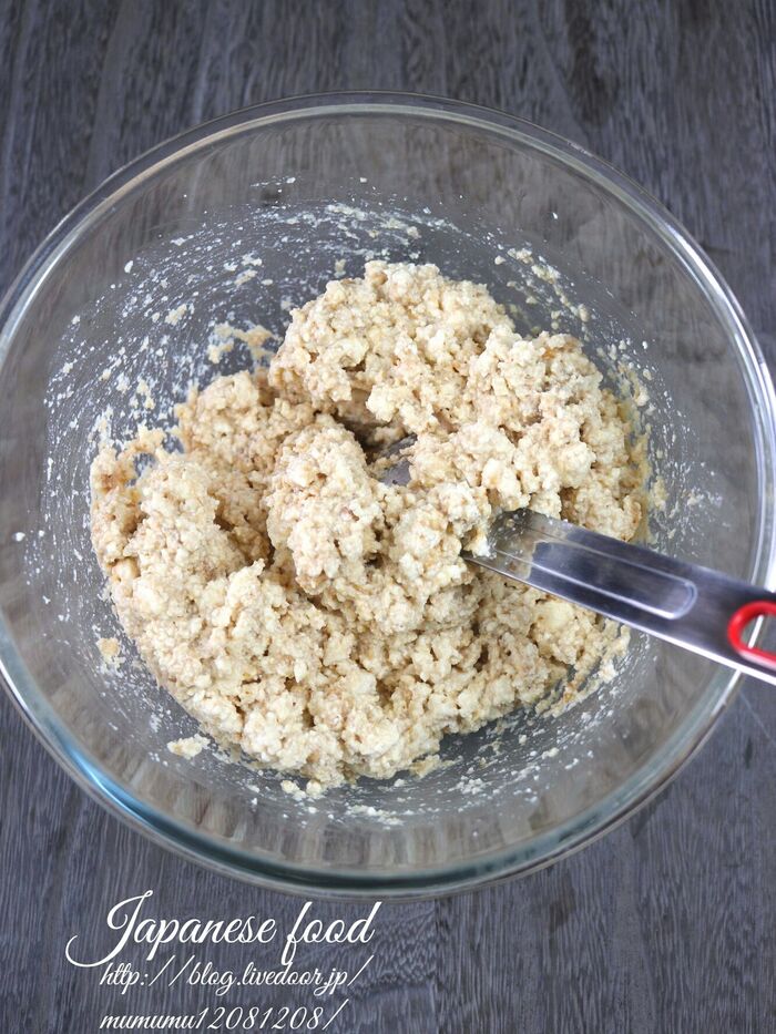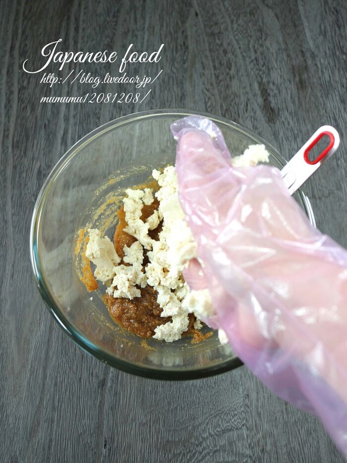 水切りをした豆腐を手で潰しながら入れる。