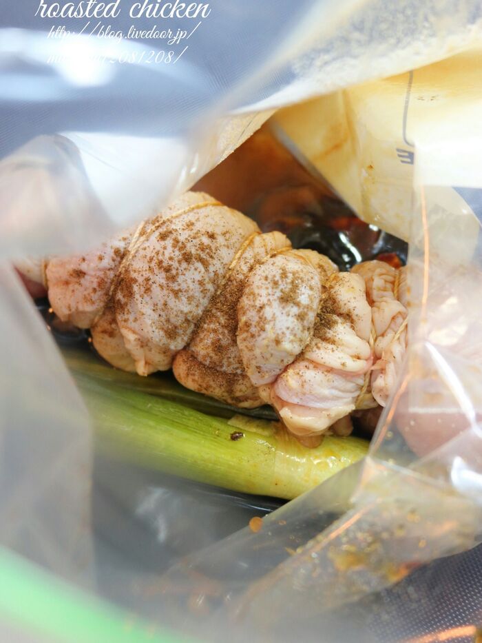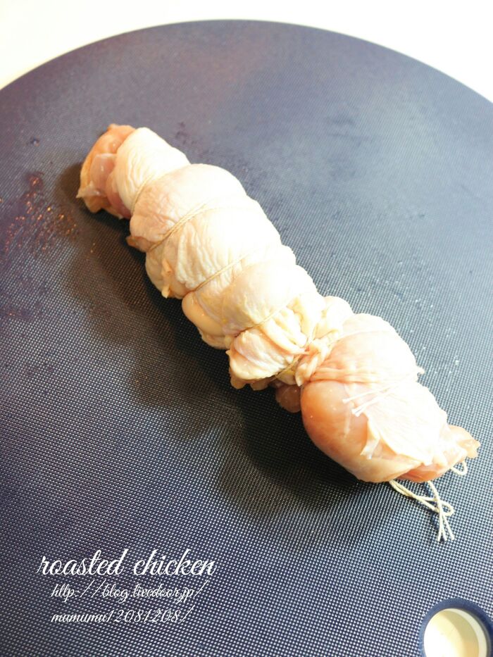 ②鶏肉をくるくるっと丸めてタコ糸などで縛る