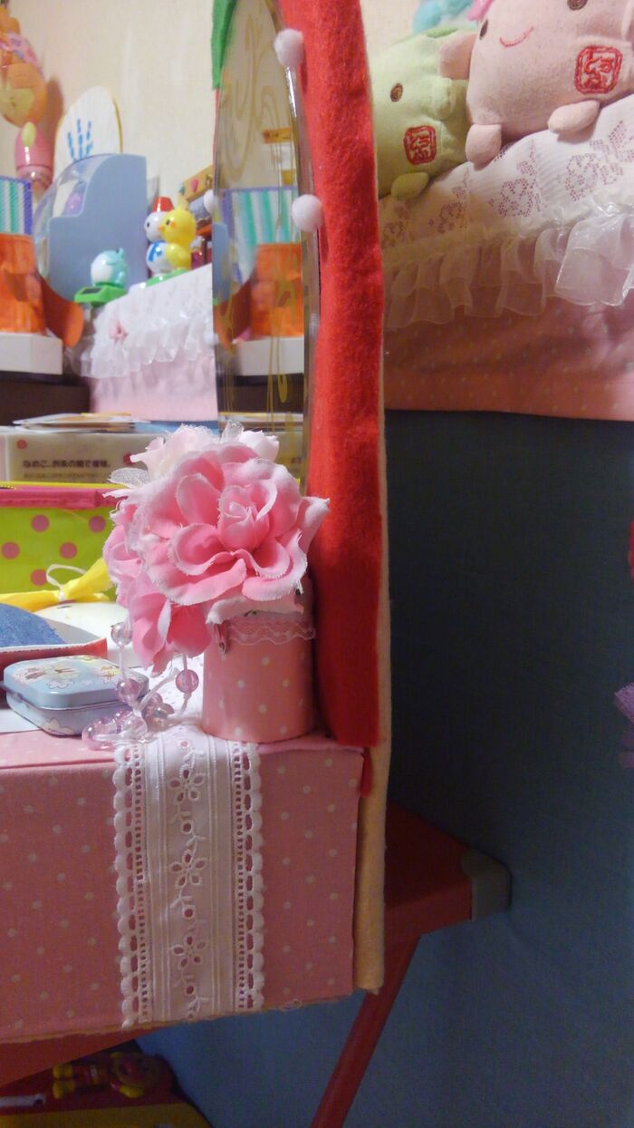 ③引き出し部分の箱、鏡をはめ込んだ鏡部分を合体させ、しっかり固定する