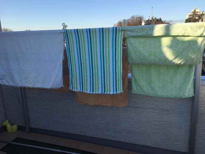 (タオルは2時には取り込んでいます。この時間には乾いています)