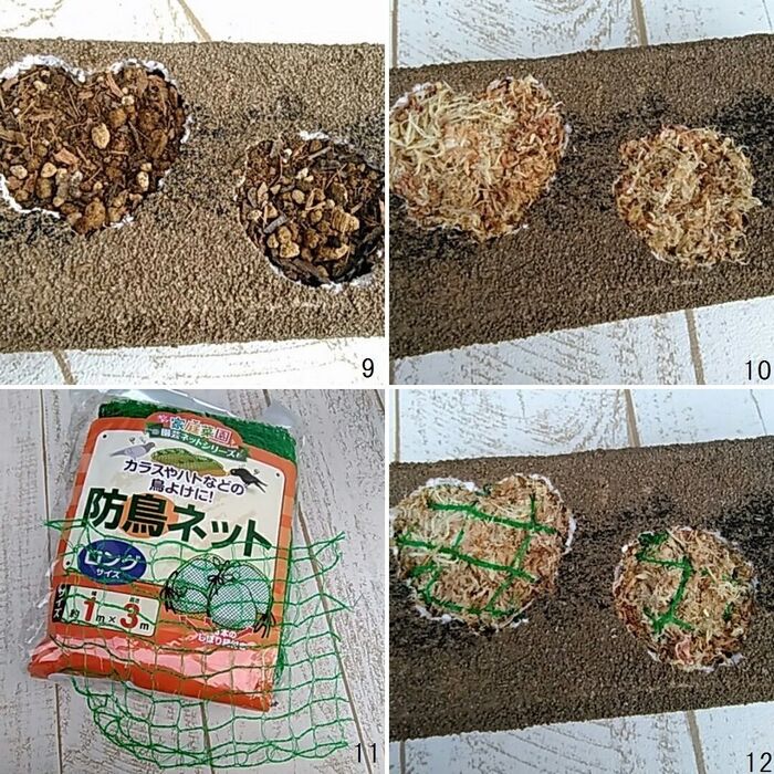 防鳥ネットを被せてブロックの縁に入れ込みます。