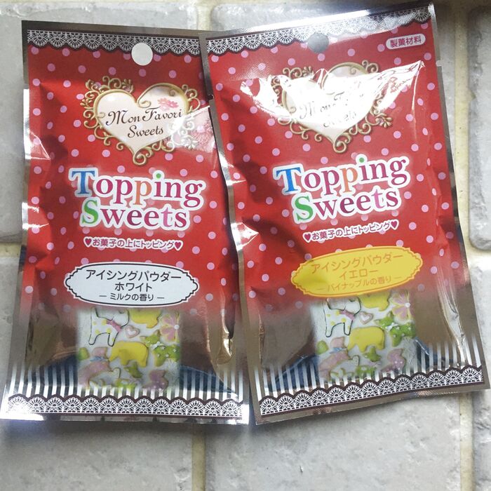 使ったのは100均から出てるアイシングの粉。色もホワイトやイエロー、レッド、グリーンなどさまざま。