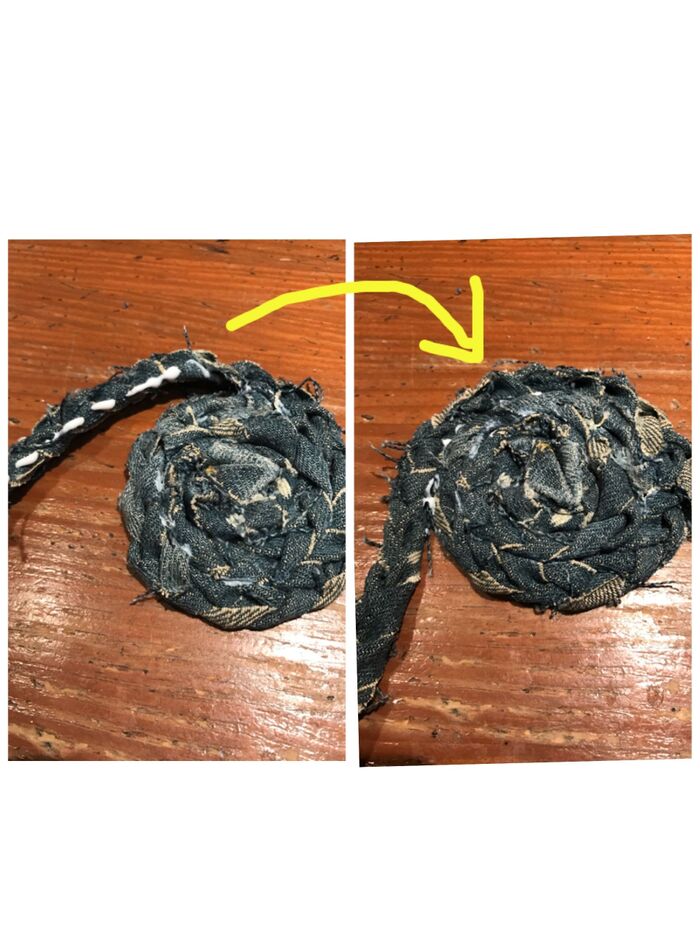 だいたい1つのコースターに約60cmのデニムで作っています。