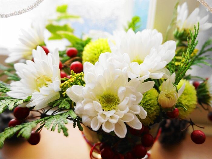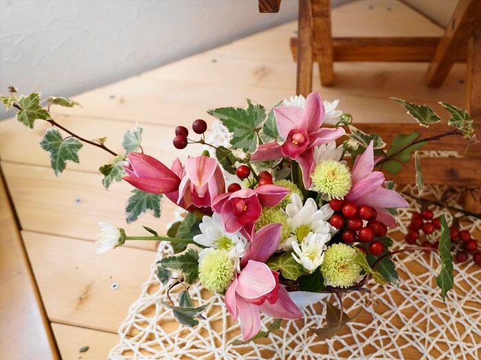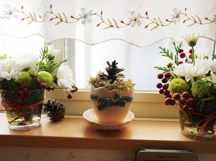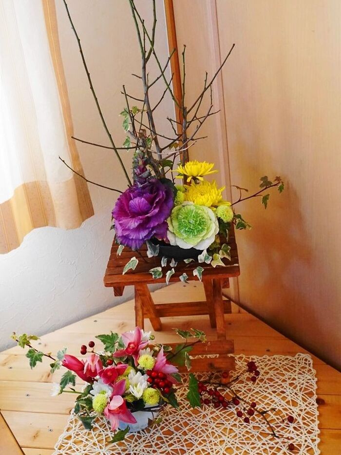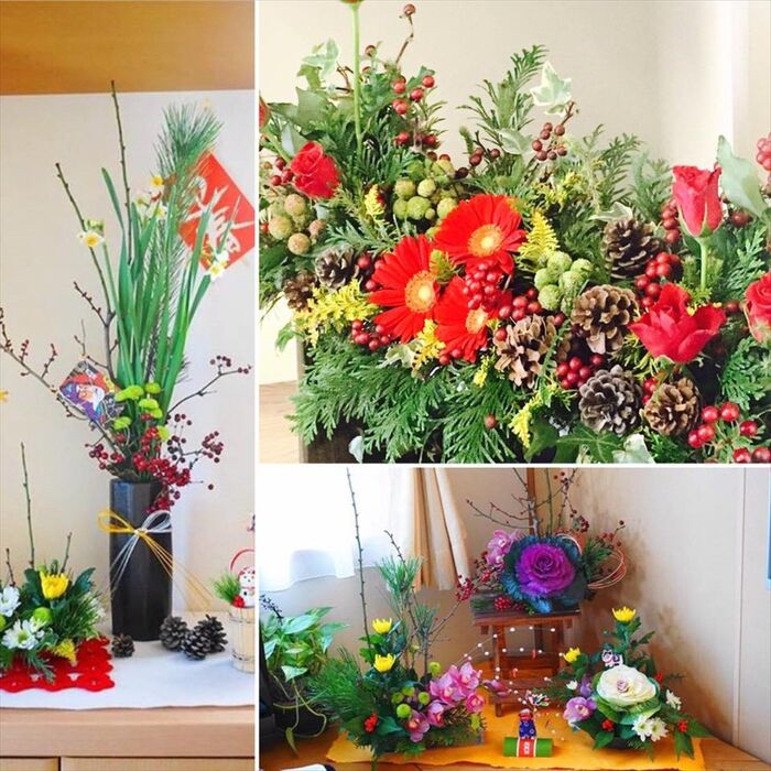 傷んだものを外して使えるもので作り直せばまだまだ楽しめます。同じ花材でもお正月っぽさをなくせば雰囲気も変わりますよ~♪