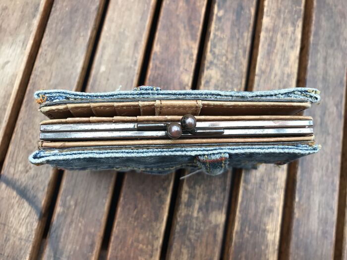 財布に貼りたい部分をデニムから選び縫い代1cm程余裕をみてカットします。