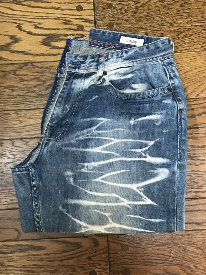 デニムのカットした部分に端ミシンかけます。面倒な場合は縫わずに折った部分をボンドで留めればOKです。