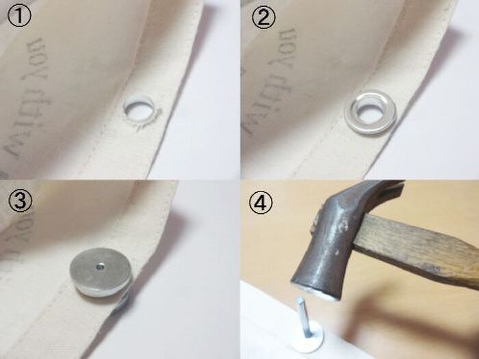 まずは、トートバッグ・ハトメリング・ハトメ打ち具・紐を用意します
