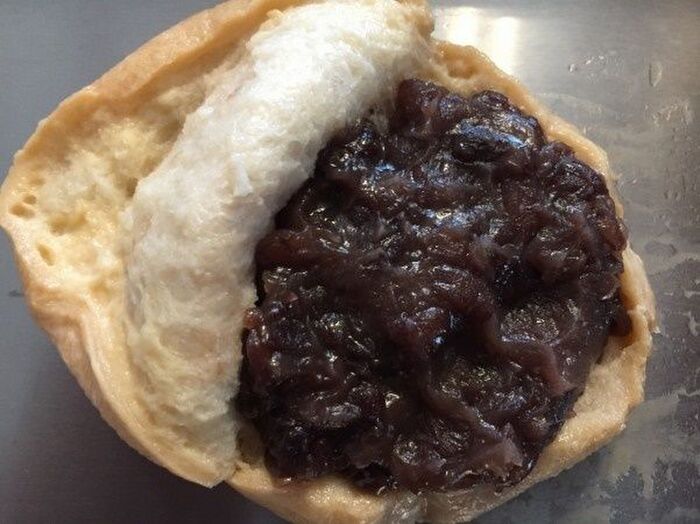 柔らかくなった麩に切り込みを入れ 1個につき50g位のあんこをはさむ