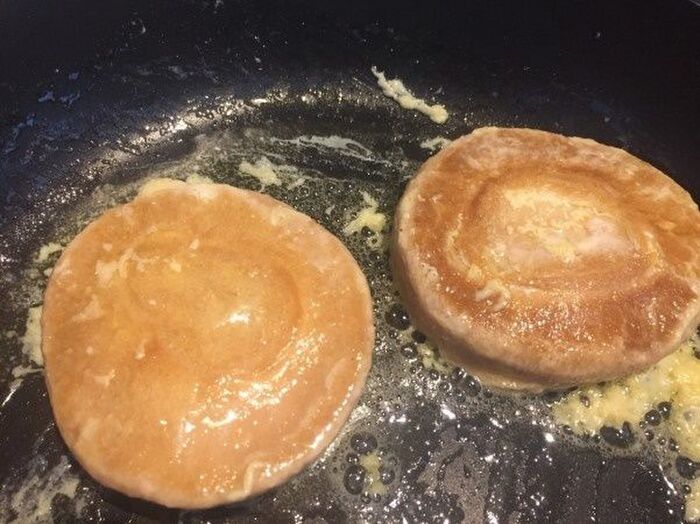 フライパンにバターを入れ弱火で麩の両面をこんがりと焼く