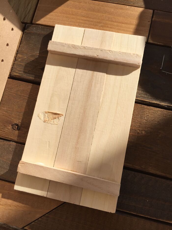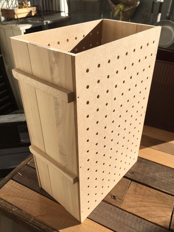 画像のように、有孔ボードとすのこを細身の釘と木工用ボンドを使って