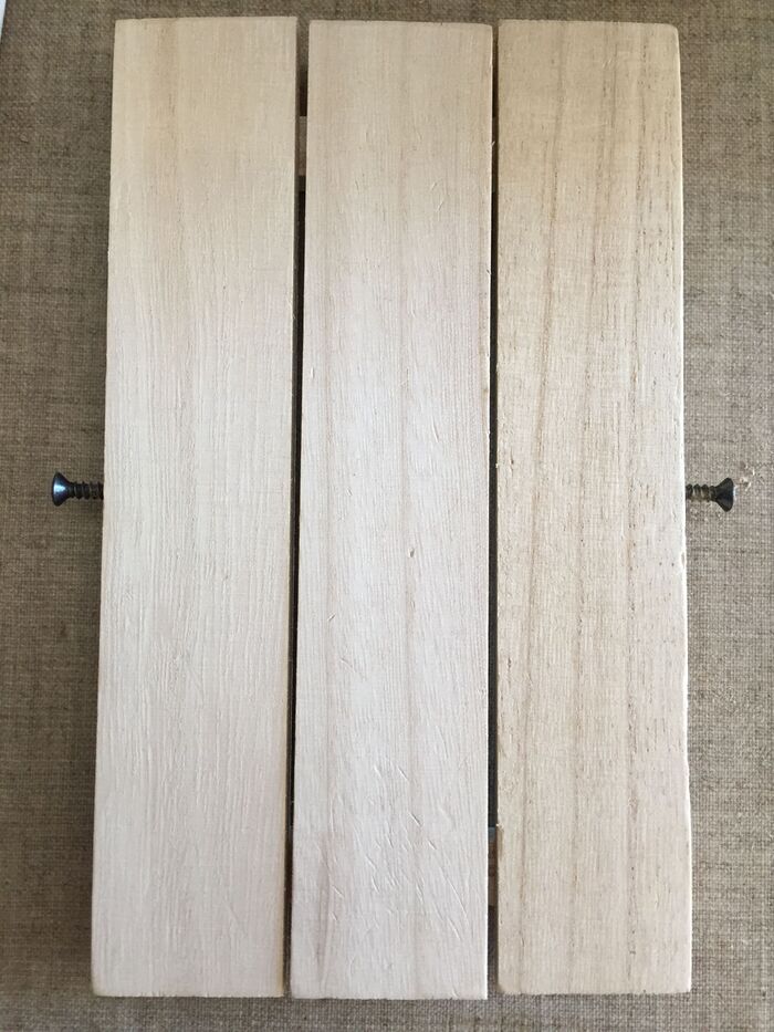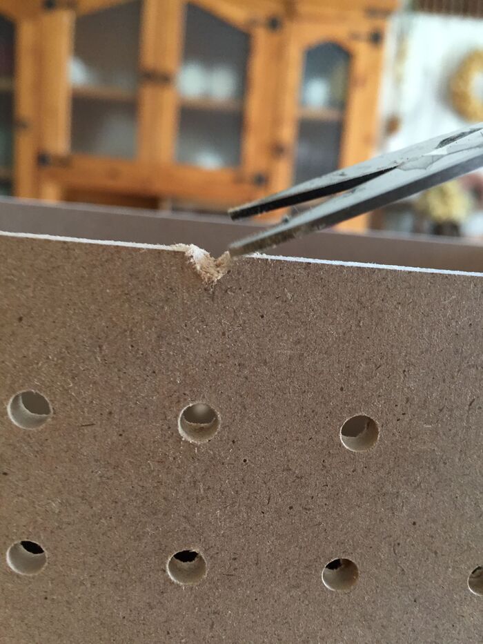 すのこの端材を使って板と板の間にもう一枚差し込み、有孔ボードのサイズに