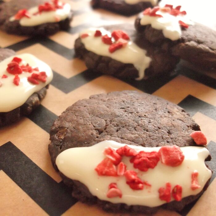 チョコが固まる前に、フリーズドライのイチゴをトッピング。