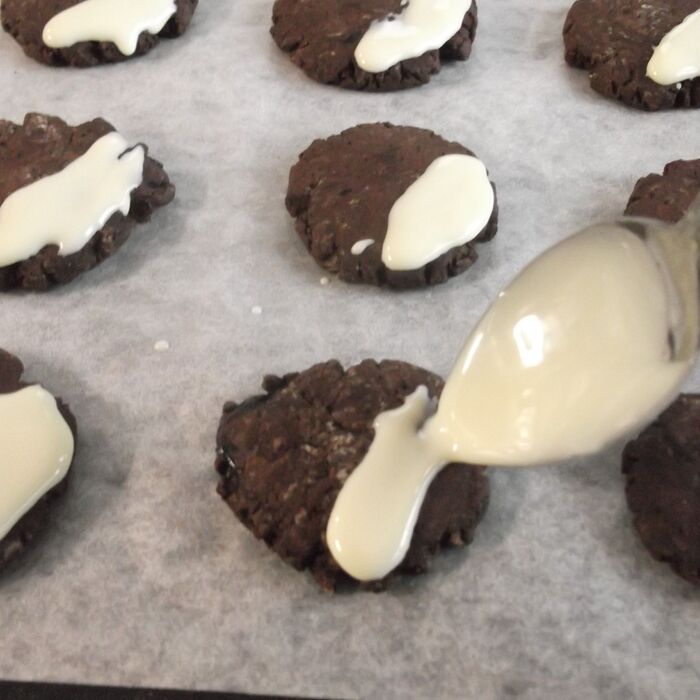 クッキーの半面に垂らしていく。