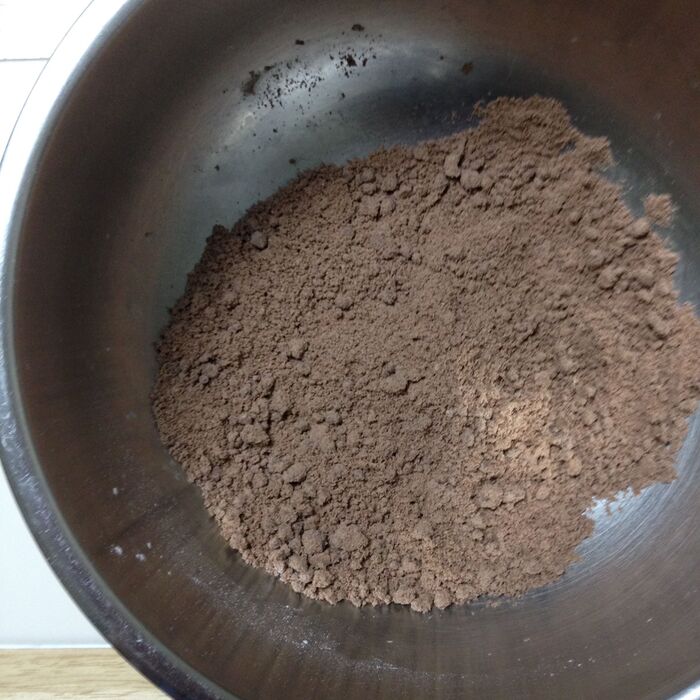 ②ボウルに薄力粉、ココアパウダー、きび砂糖を入れて、泡立て器でぐるぐる混ぜます。