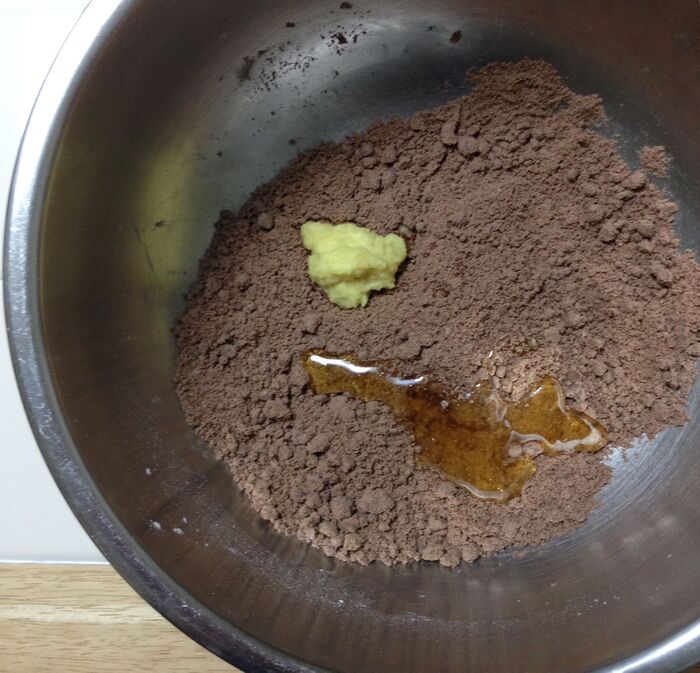 ④生姜のすりおろしと蜂蜜を加えて、折りたたむようにしてまとめます。