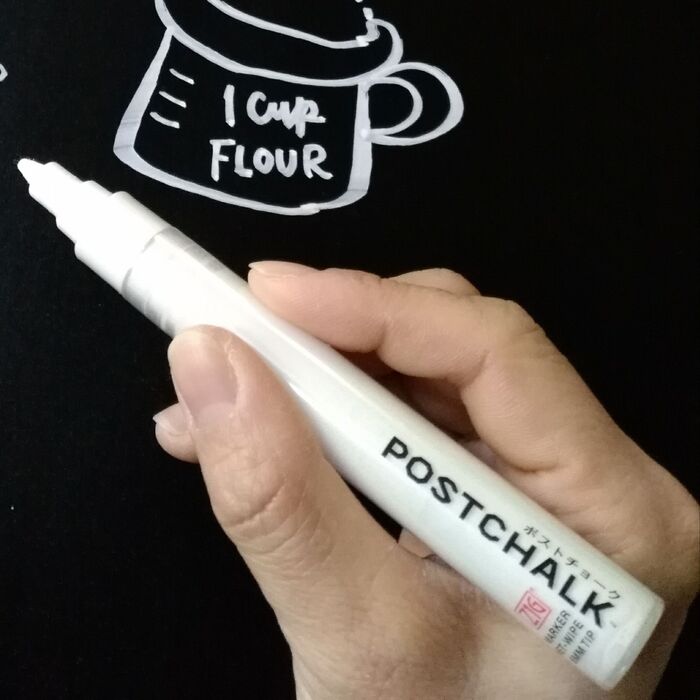 今回は白一色で描きましたが、ポストチョークは他の色もあるので、いろいろな色を使って描くとカフェの黒板アートのようになるかも?