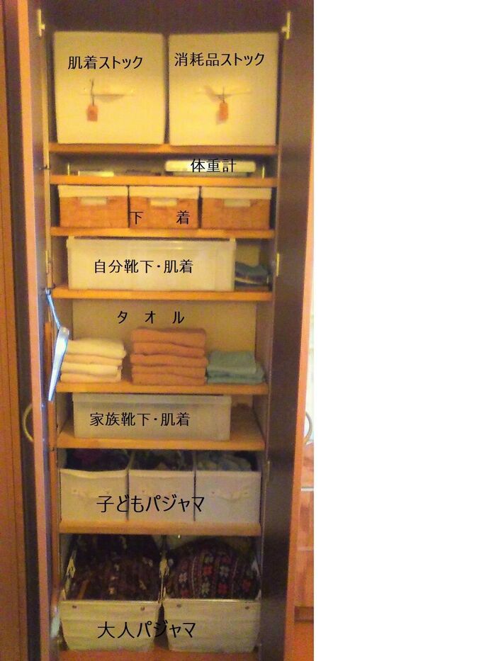 【最上段の白いBOXには、肌着や下着のストックと消耗品のストック】