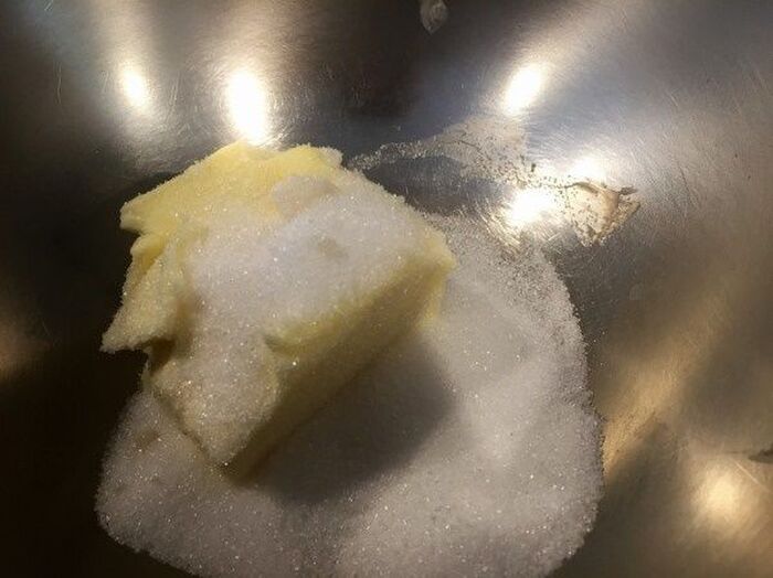室温に戻したバターにグラニュー糖を加えよく混ぜ