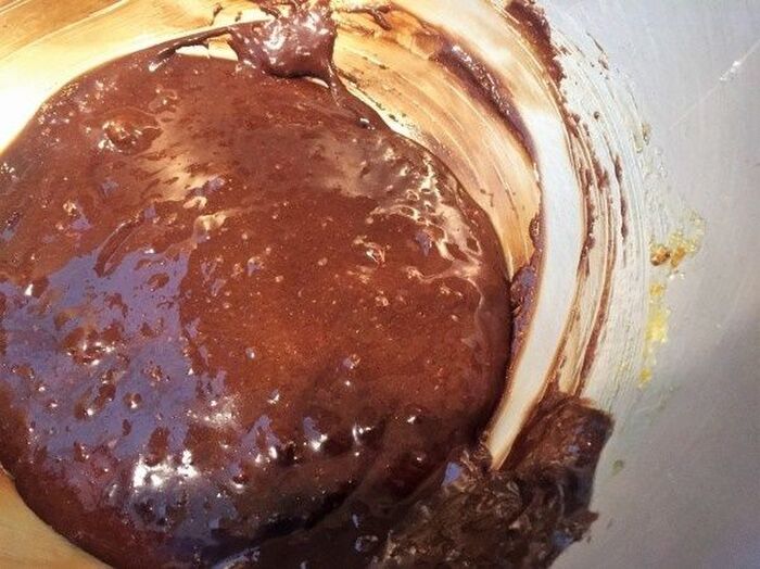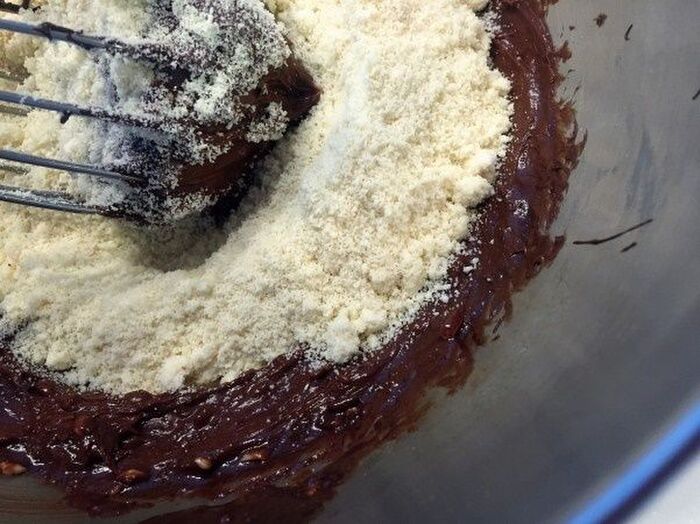 チョコレートを刻んで湯煎で溶かしたものを加える