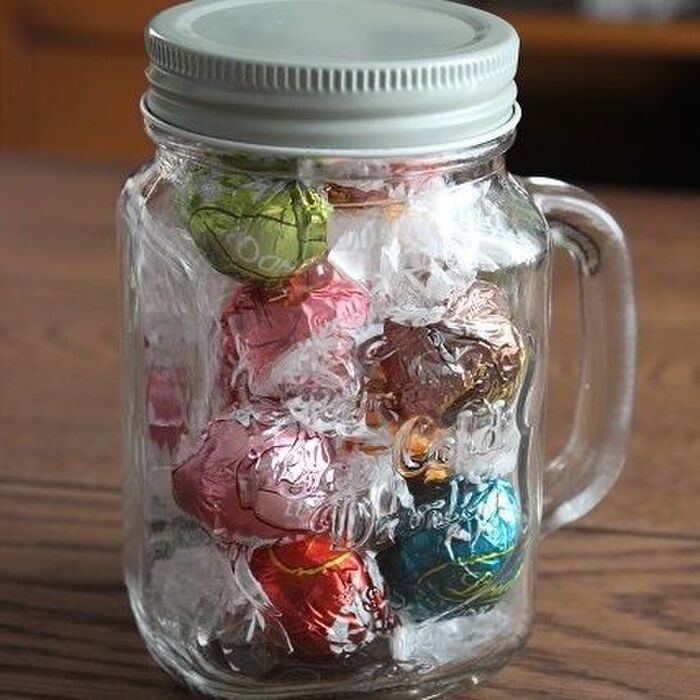 カラフルなフィルムに包まれていますので、こんな風にメイソンジャーに詰めても可愛いかも♪
