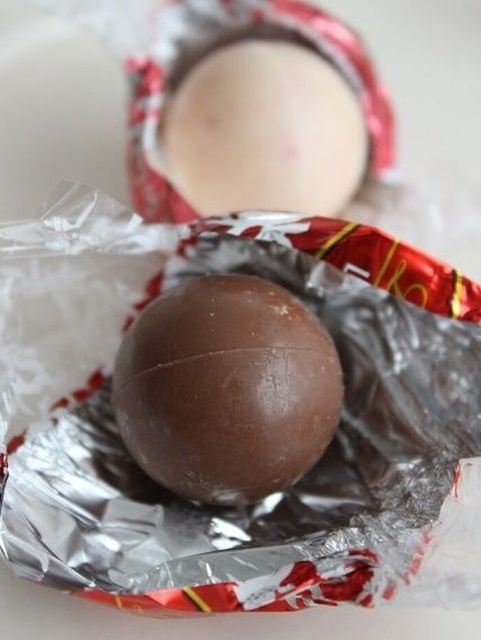 球体のシェルの中に滑らかなフィリングが詰まっている2層仕立てです。