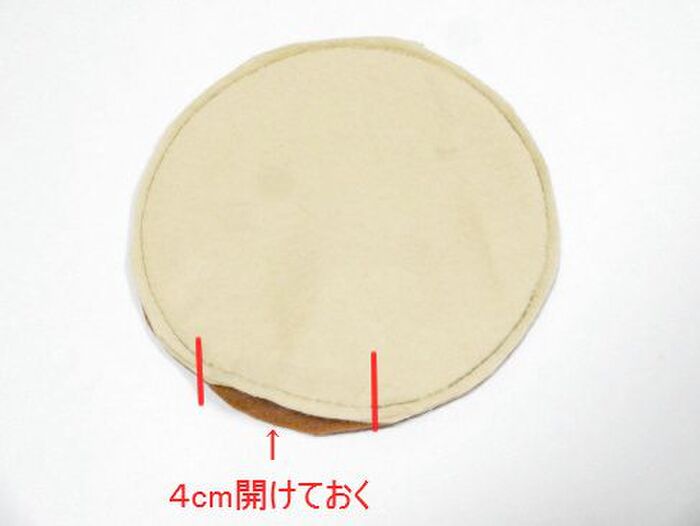 返し口分を4cm開けておきましょう。