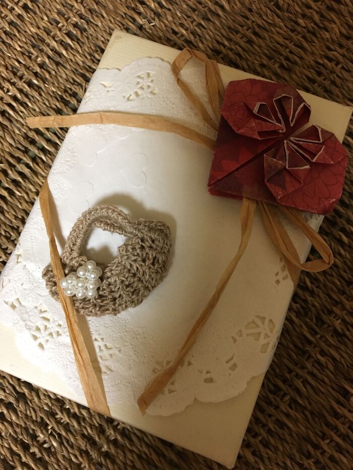 ハートの中心にボタン等の飾りをつけても可愛いです。
