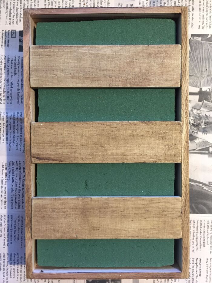 すのこをオアシスの上に木工用ボンドで貼り付けます。