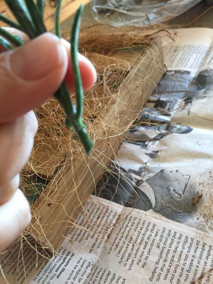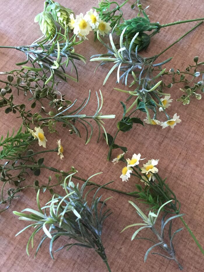 画像のように斜めにカットしてココヤシファイバーの上からオアシスに挿していきます。