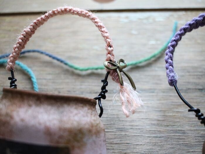 今回は自作のリメ缶を使用しましたが100均などで購入したバケツ型のアルミ缶の持ち手部分にアレンジしても出来ます。