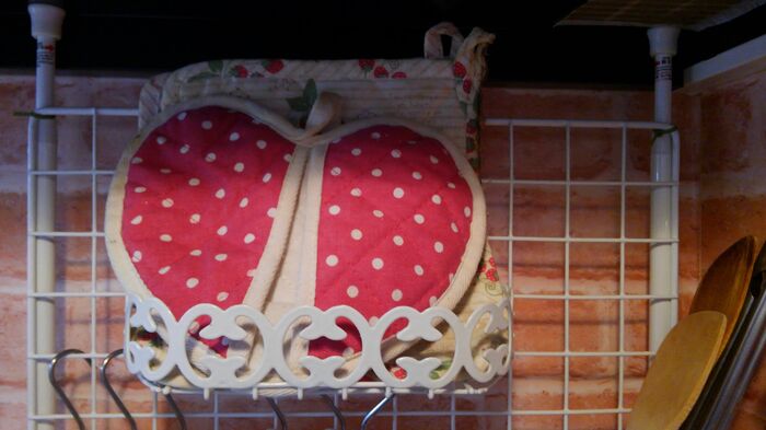 その他、調理中に使う調味料、鍋つかみや鍋敷、木べらやトング、お菓子やパンによく使うので温度計もここに置いてます(*^^*)