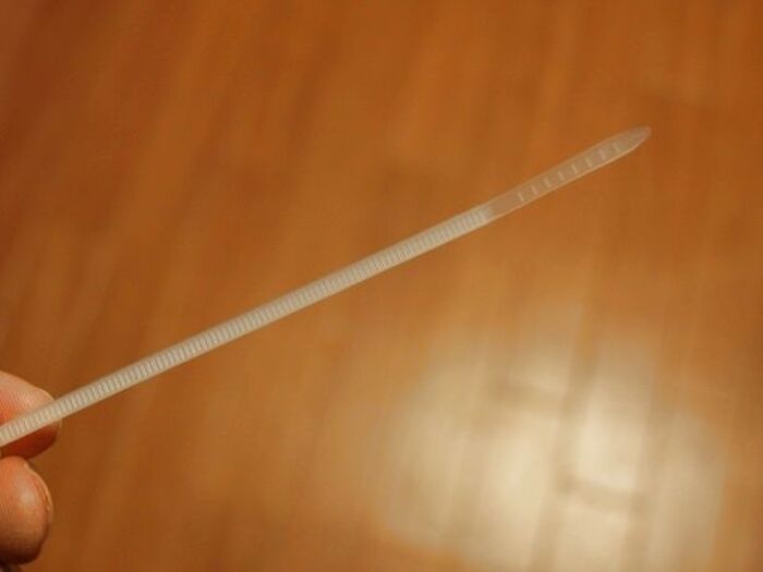 結束バンドを使ってワイヤーと突っ張り棒を固定します