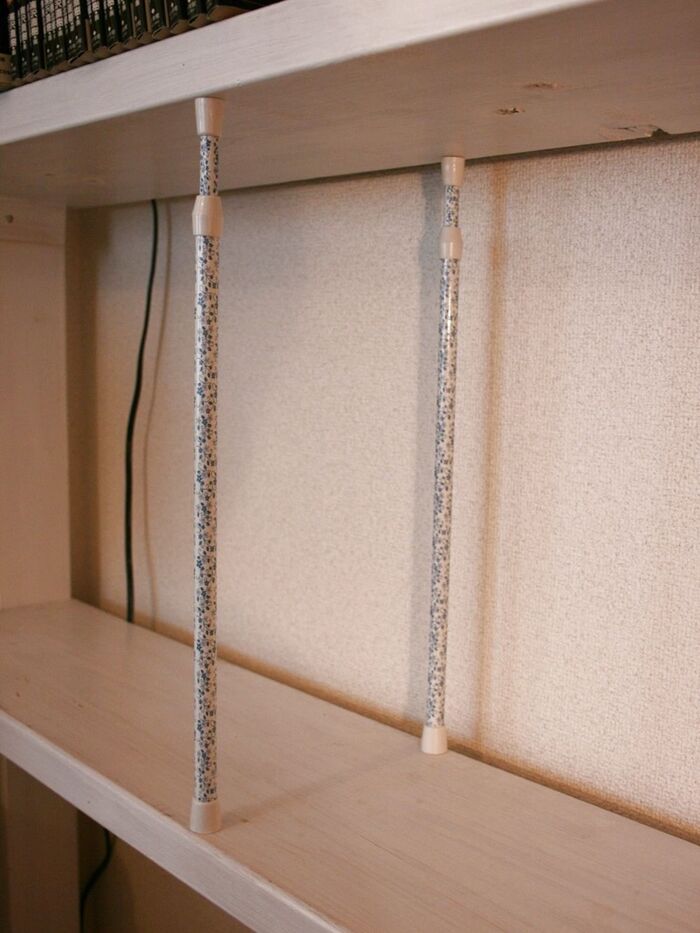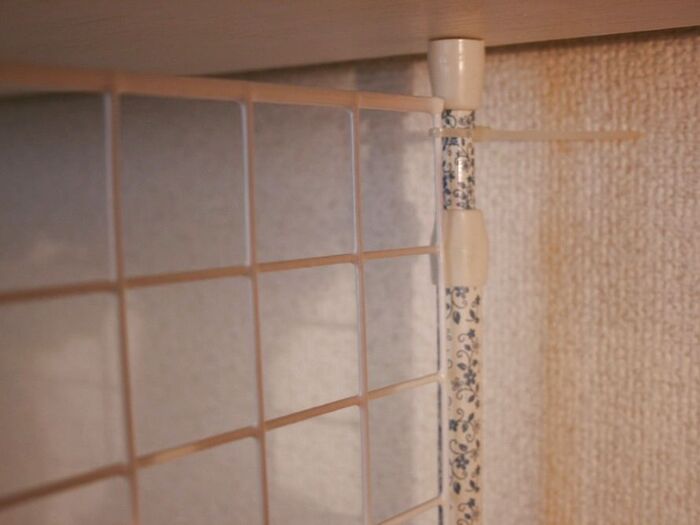 間仕切りを立てたい場所に、突っ張り棒2本を立てます