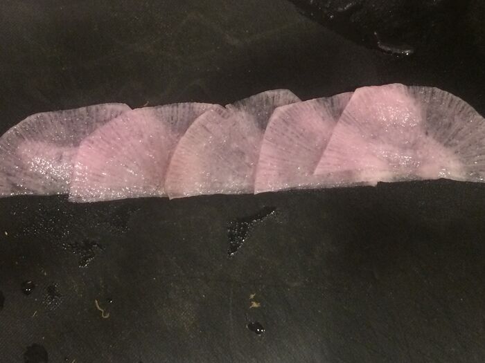 大根を20枚、スライサーでカット。