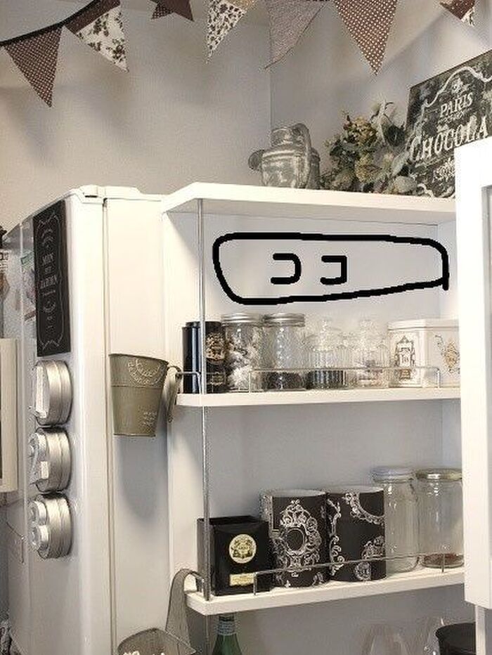 一番上の段に、よく飲むお茶の茶葉たちを数種類ガラス瓶に入れて並べているのですが、、、