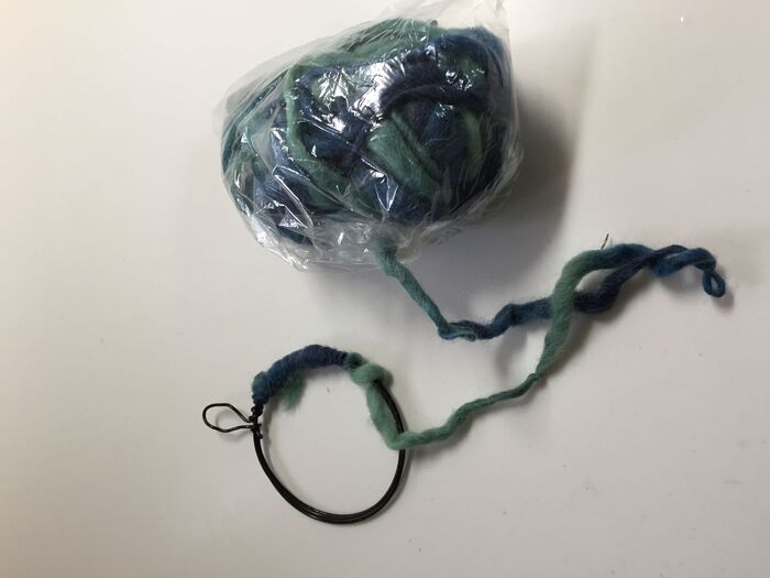 針金に毛糸を結び、ただひたすら巻き付けます。