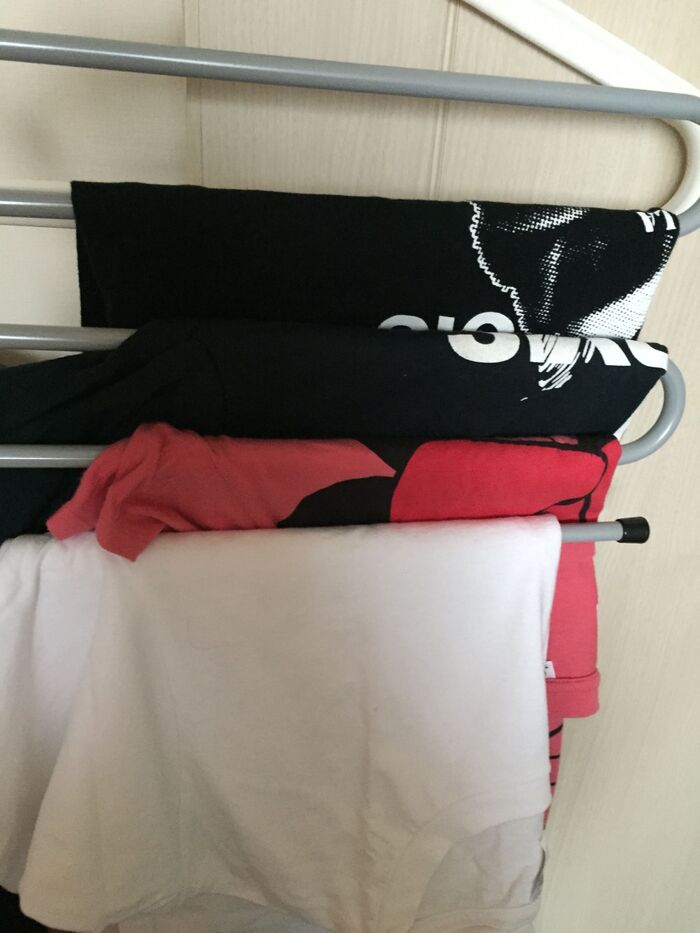 フツーのハンガーだと肩の部分が伸びてしまうし、服の数だけハンガーが必要になりかさばっちゃう、、