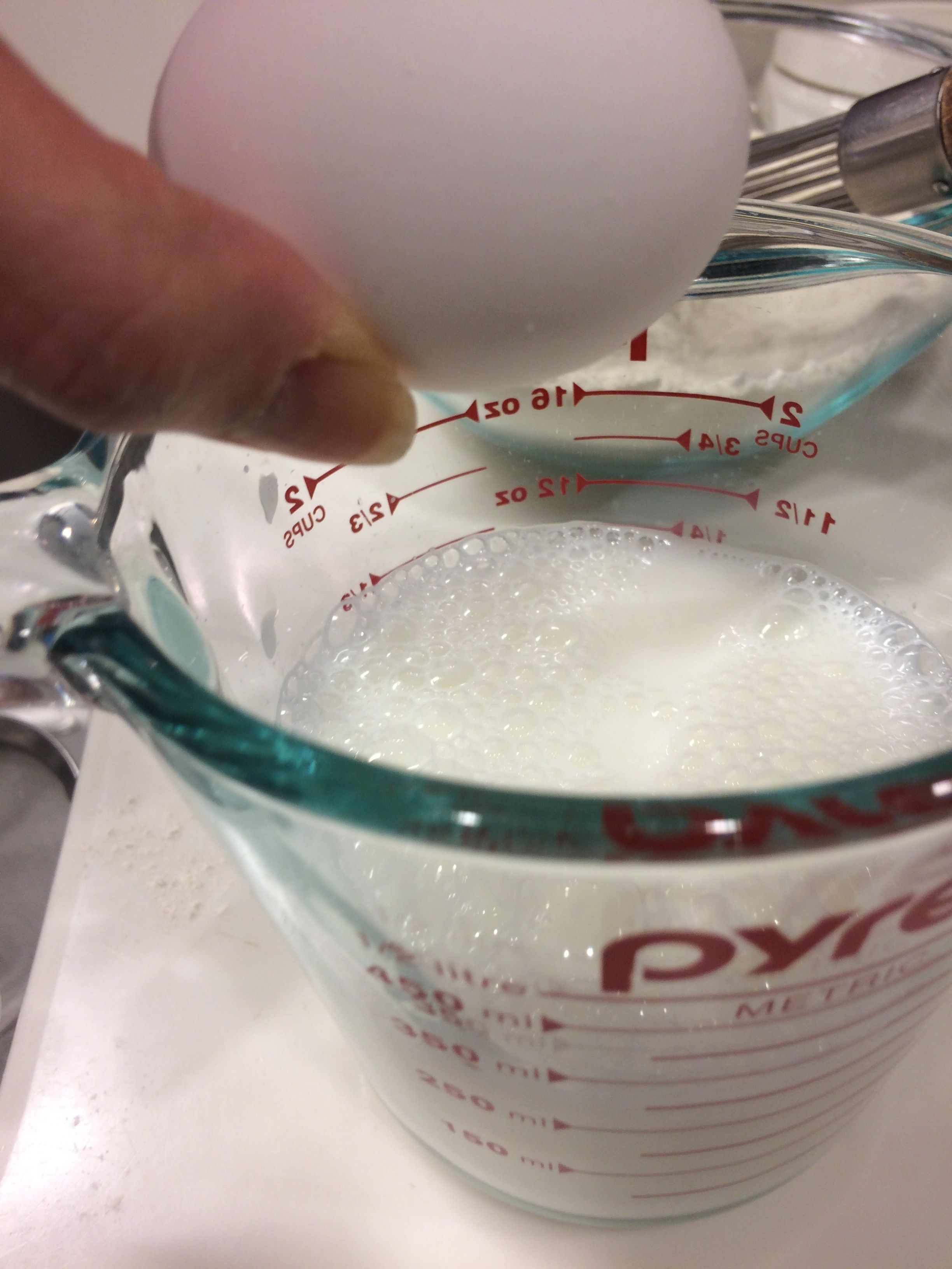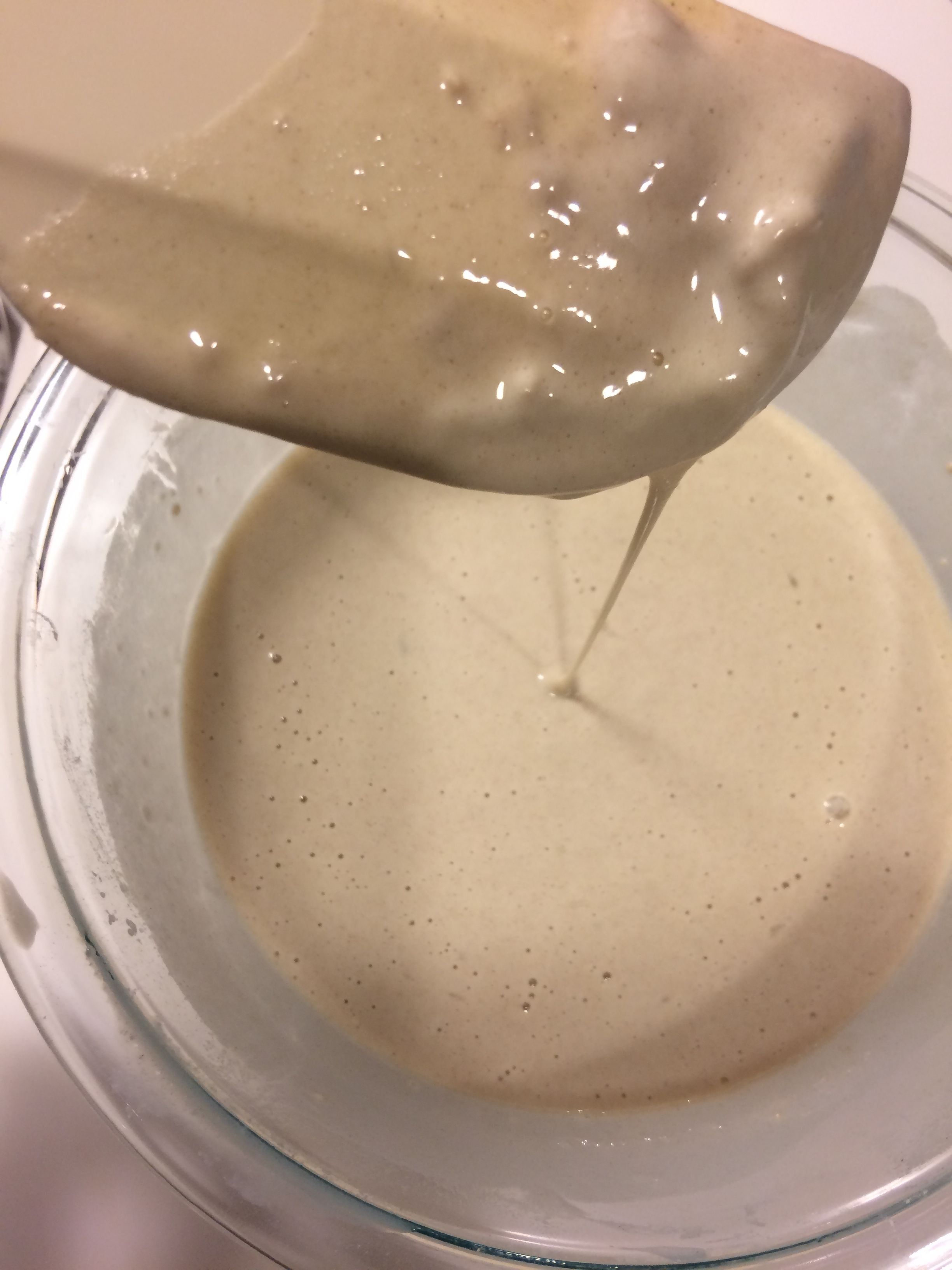 そば粉に少しずつ卵液を加え、画像のようになめらかになるまで混ぜ合わせる。