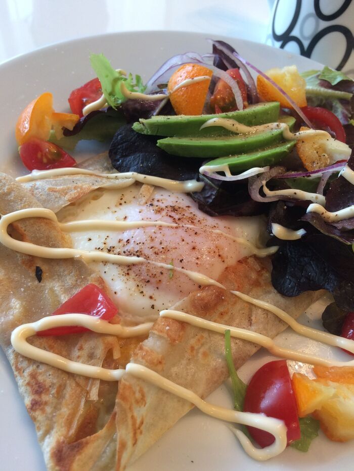 四方を折って、好きなサラダをたっぷり盛る。トマトやオレンジをトッピングすると爽やかな味に!